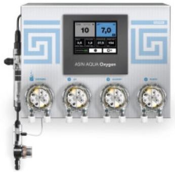 - OXYPURE, pH MINUS, ALGICID und Flockungsmittel FLOC + C können dank vier Dosierpumpen gleichzeitig dosiert werden, um kristallklares, auch bei geringer Chemikalienkonzentration angenehmes Wasser zu erhalten