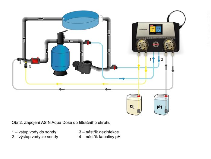 - ermöglicht die Messung und Dosierung von Desinfektion (Chlor und Chlor), pH