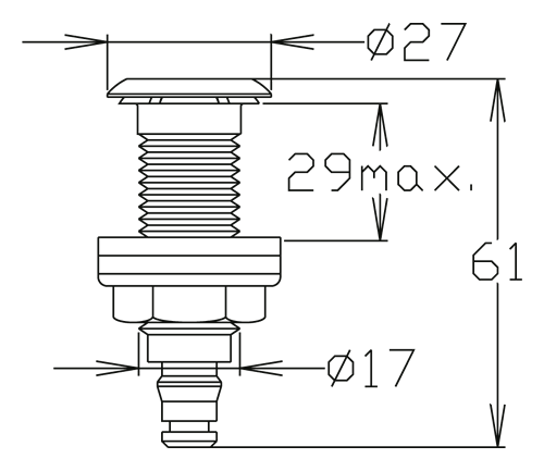 Luftdüse mit Messingdeckel, Wannenboden max. 29 mm, lang