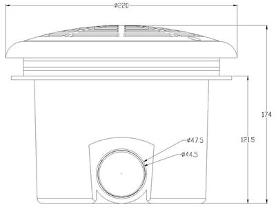 průměr mřížky 220 mm, průtok 150 l/min.