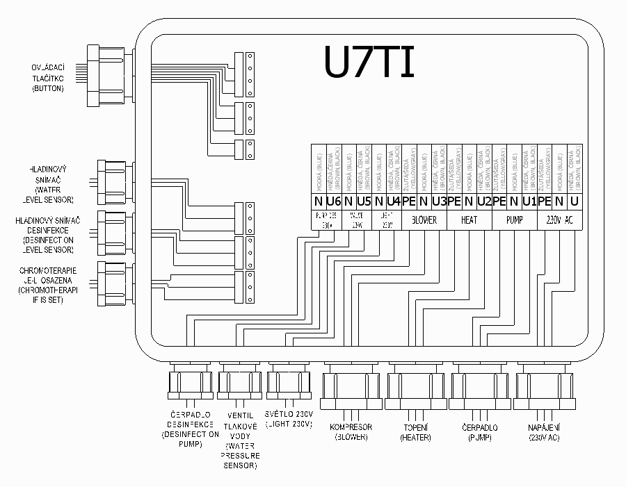 Code: 120082 U7TI Delivery: discontinued Price: 323.60 € excl. VAT* - control of blower (ON / OFF) with regulation (+ / -) and pump (ON / OFF), both with pulsation (ON / OFF), light (ON / OFF), water heating (ON / OFF), disinfecting rinse StreamClean (ON / OFF)