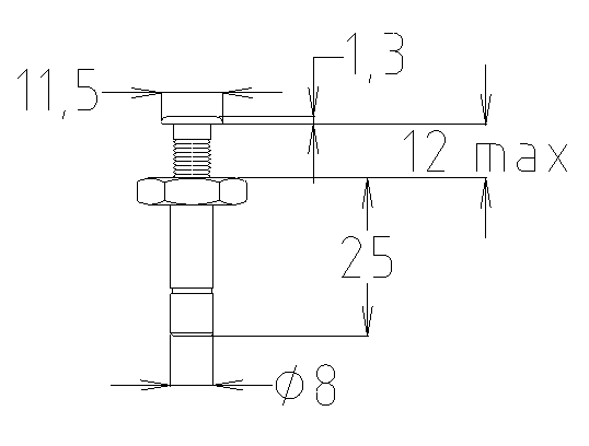 - length 25 mm, height under the bath-tub surface 1,3 mm, brass/chrome